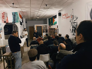 Por su parte, los siempre animosos camaradas valencianos de El Galeón, organizaron en su espacio no conforme, una conferencia histórica sobre la gesta de la División Azul a cargo del escritor e historiador Carlos Caballero quien desgranó las claves para luchar contra la desinformación y el falseamiento de los hechos históricos. El Galeón se ha consolidado como el núcleo  patriótico y social de la provincia alicantina y sus actos hablan de sus ganas de militancia y compromiso. Se está demostrando que cuando las cosas se hacen bien, el activismo social funciona y crea ilusión. Que el Galeón siga navegando intrépido bajo el mismo viento.