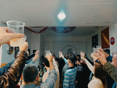 Copas en alto, brindis, buena música, proyectos, entusiasmo, unidad y compromiso.