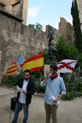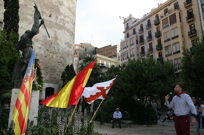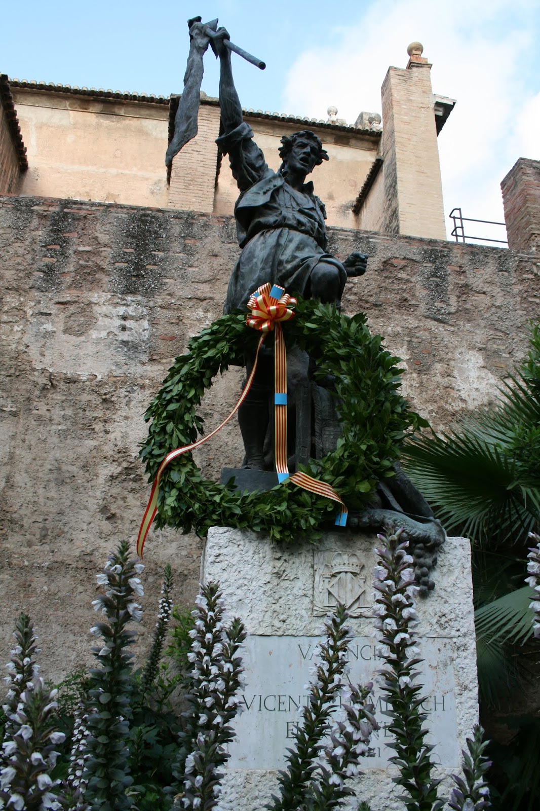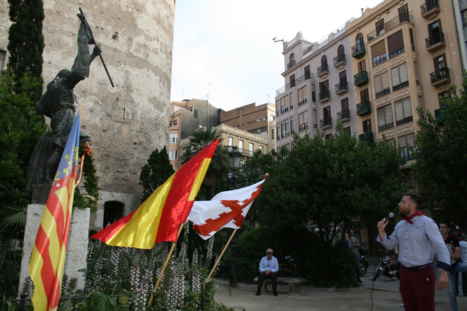 Para cerrar el acto dos jovenes militantes colocaron una corona de laurel en la estatua del homenajeado junto a las Torres de Quart. Y como no podía ser de otra manera, se recitó la Oda a los héroes del 2 de mayo con emoción y respeto.